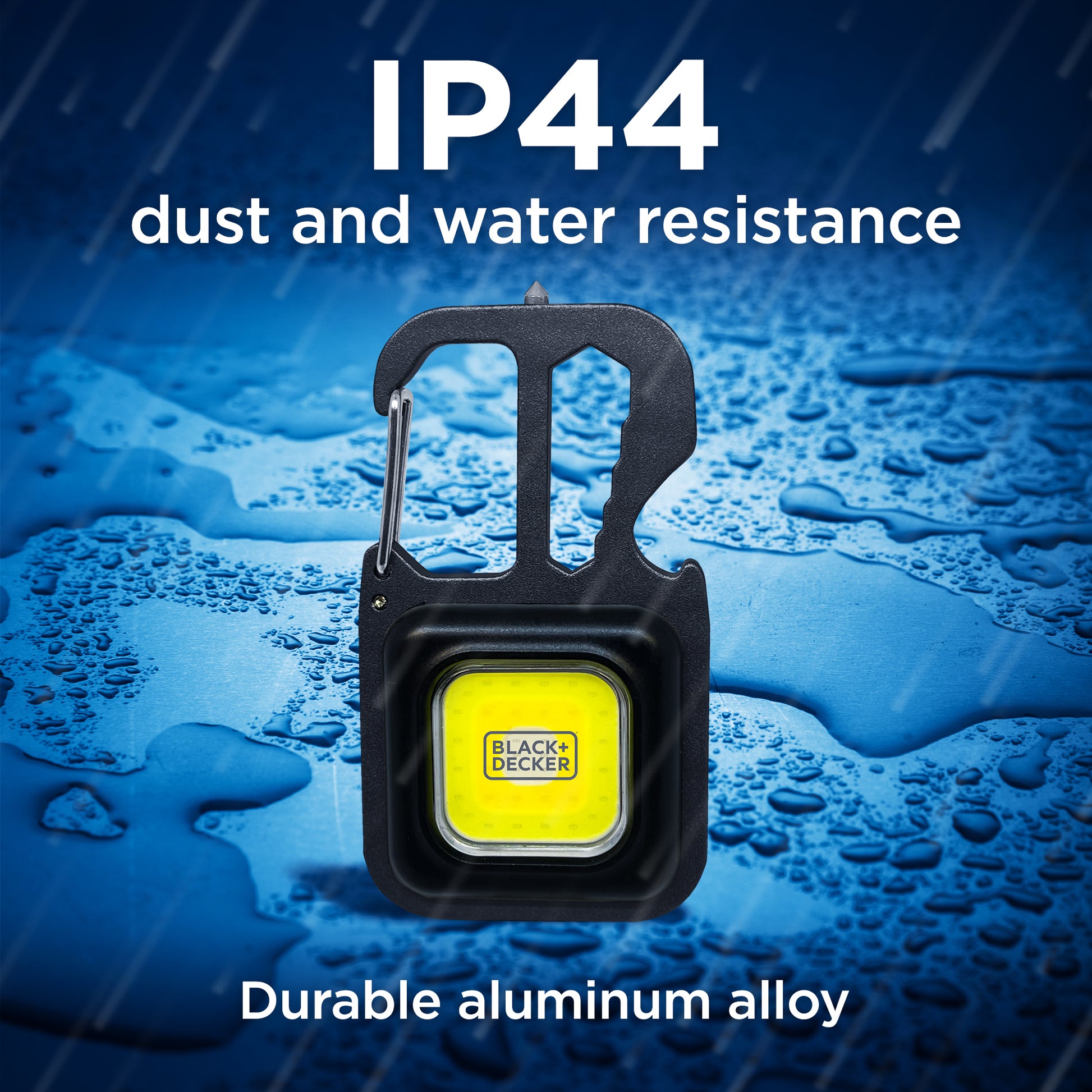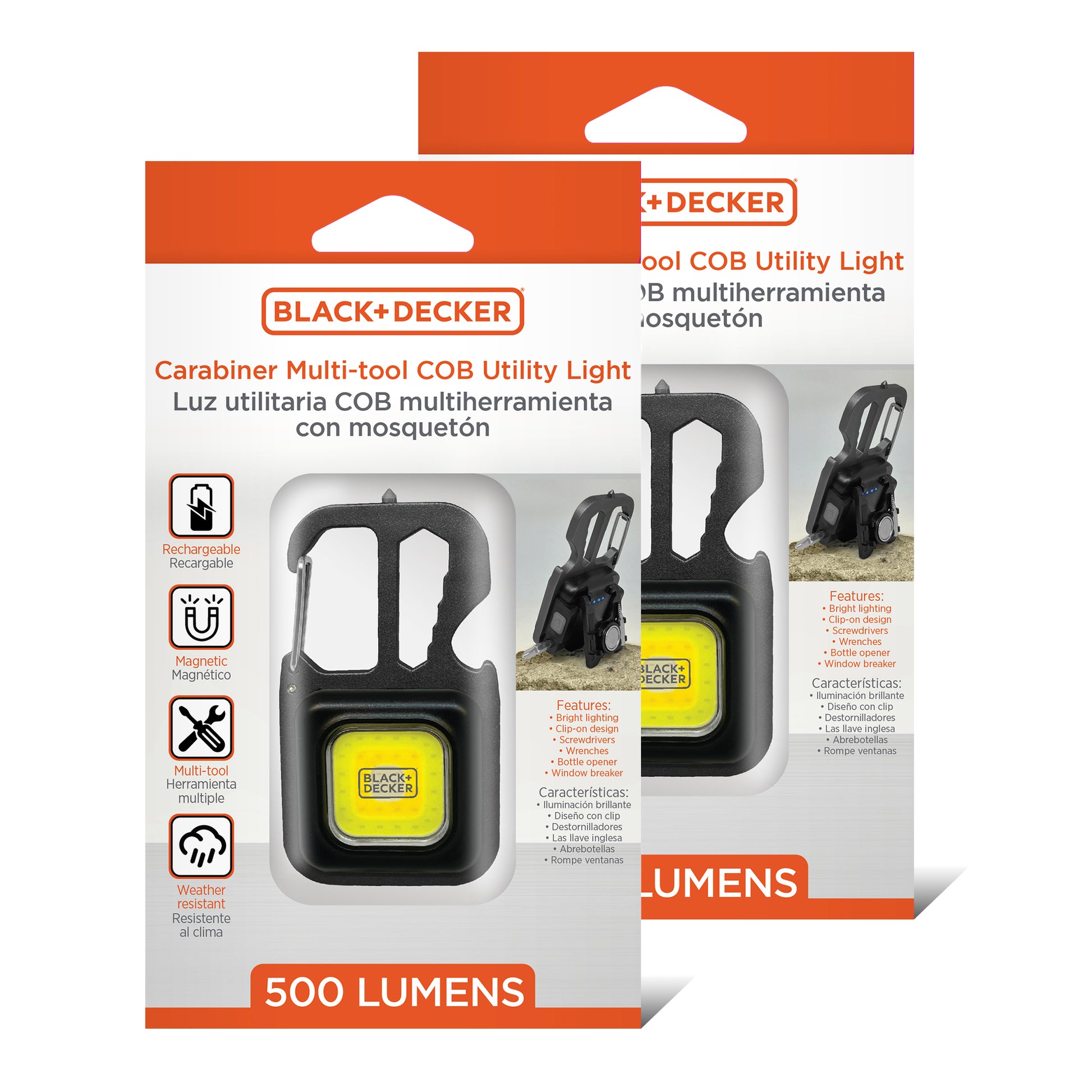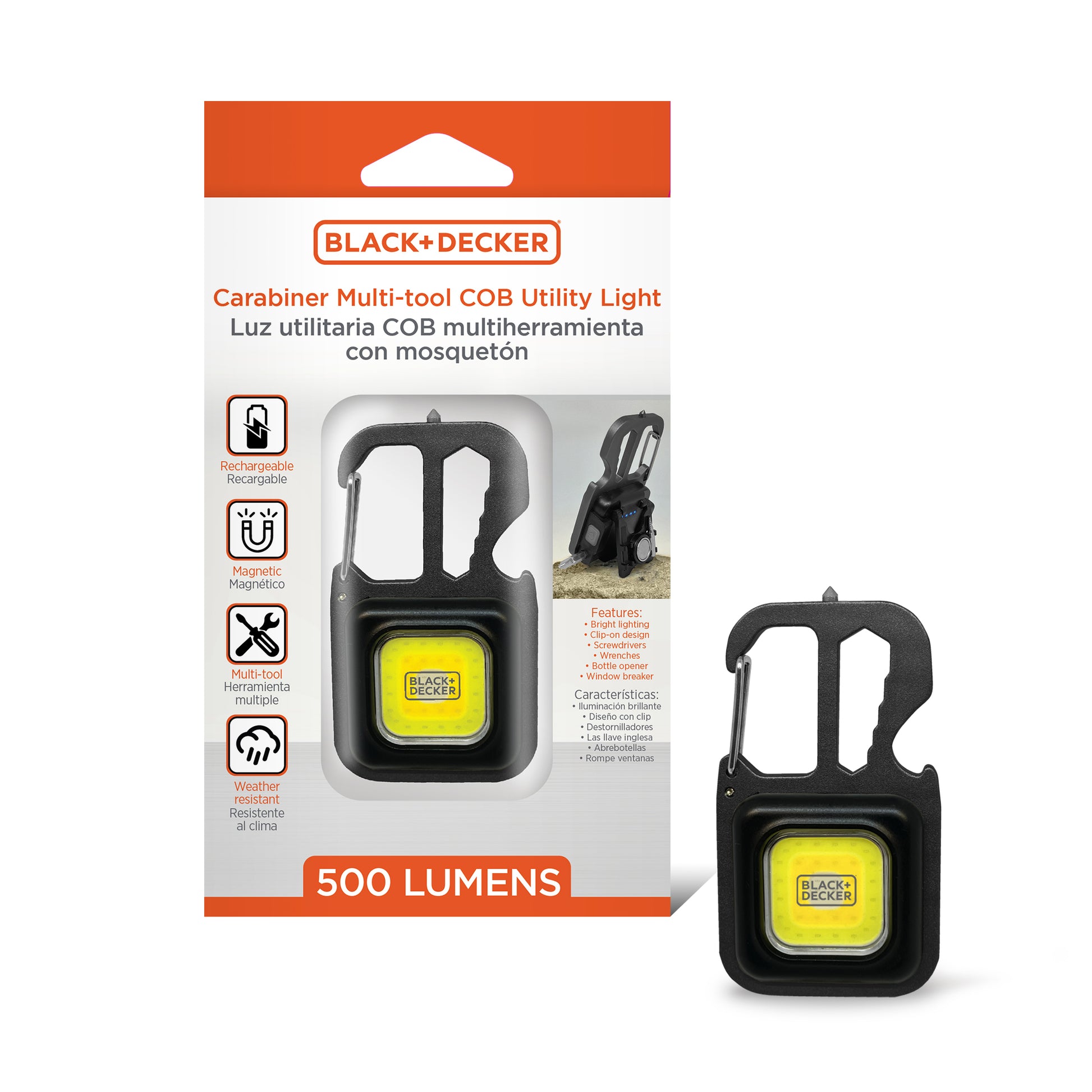 Be prepared for any task with the BLACK+DECKER 500 Lumens Multi-tool COB Utility Light, a compact and powerful lighting solution designed for jobs, travel, and emergencies. This versatile utility light measures 3” x 1.8” x 1.3” and features a bright COB LED panel with 7 lighting modes, including cool white high/low, warm white high/low, red, and a red emergency beacon. It also includes built-in multi-tool features like a bottle opener, mini screwdriver, wrench set, and emergency glass breaker—perfect for tailgating, roadside kits, or unexpected situations. Mount it your way with a carabiner-style clip, kickstand, magnetic base, or standard tripod (sold separately). The rechargeable battery provides up to 3 hours of continuous light and recharges quickly with the included USB-C cable. A blue LED indicator lets you know when it’s time to recharge. Built with durable aluminum alloy and IP44 weather-resistant protection, this utility light is ready for use in any environment.